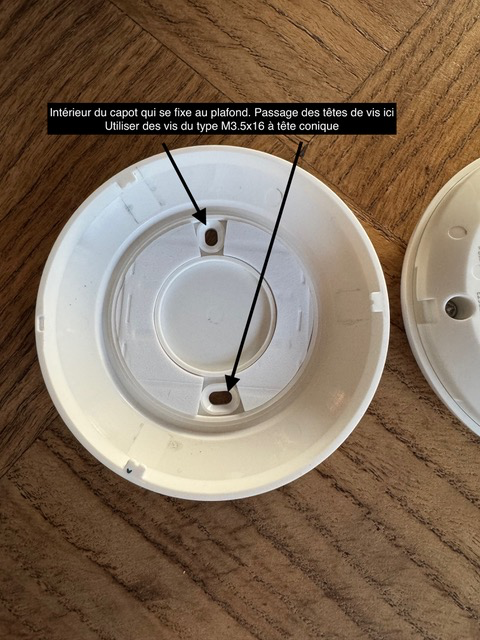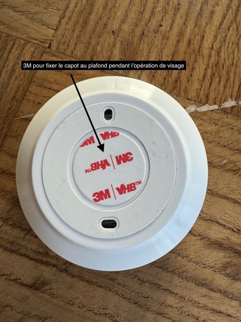 2. Commencez par fixer le capot arrière au plafond à l’aide du patch 3M. Celui-ci permet de maintenir la pièce en position avant le vissage.