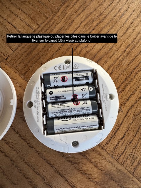 4. Une fois le capot arrière installé, retirez la languette en plastique du compartiment à piles du boîtier. Le boîtier contient quatre piles AA.