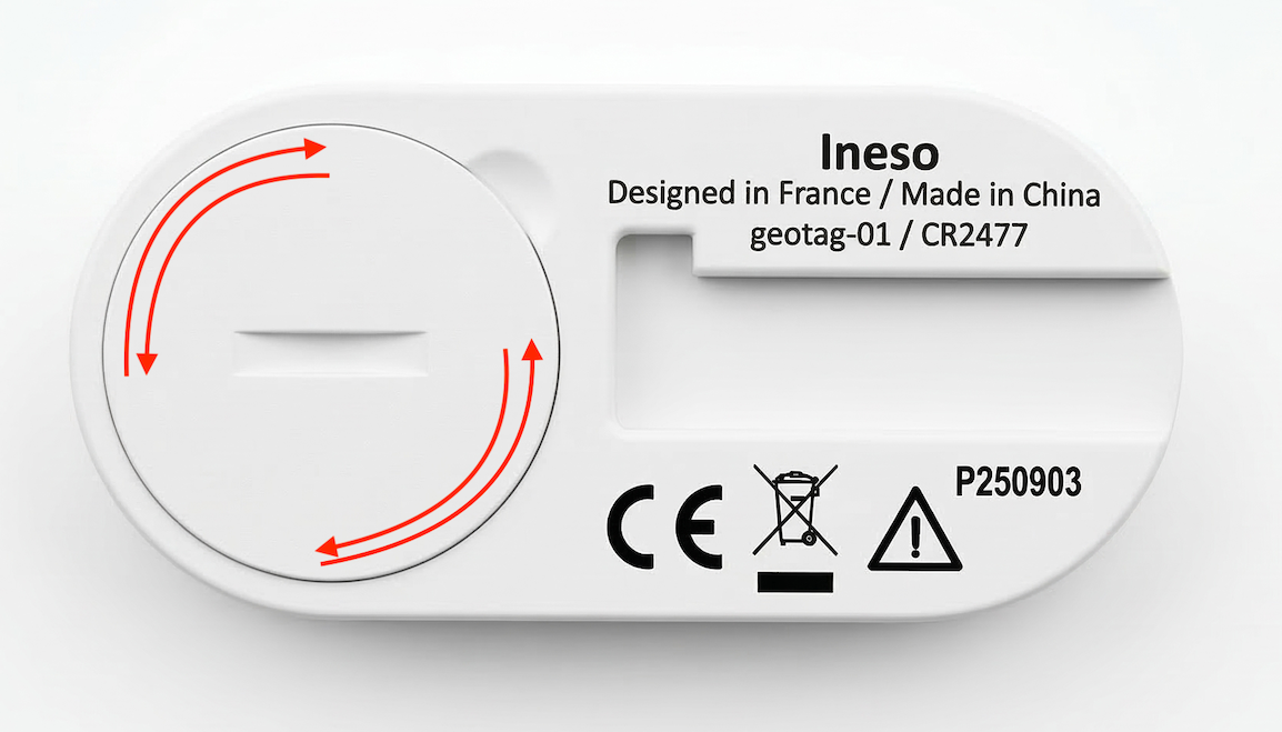 2. Prépare le support plastique, puis utilise l’ergot au dos du tag pour tourner le capot dans le sens inverse des aiguilles d’une montre.